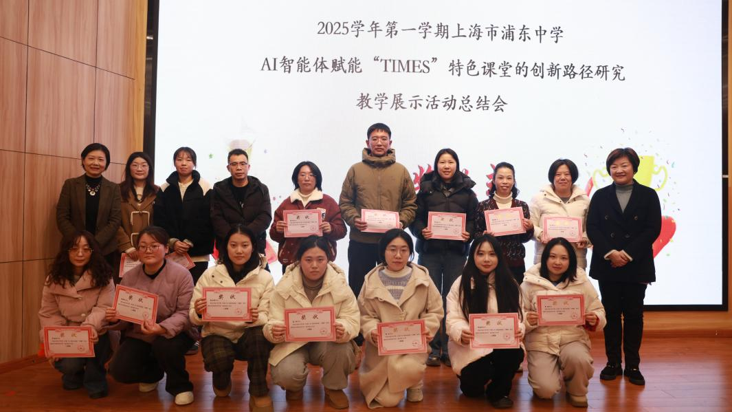 2025年11月17日至28日,上海市浦东中学成功举办“AI智能体赋能‘TIMES’特色课堂的创新路径研究”教学展示活动。在为期两周的活动中,16位来自不同学科的教师依托AI智能工具,呈现了16节精彩纷呈的智慧课堂,集中展现了学校在教育数字化转型与学科素养深度融合方面的探索成果。2026年1月9日,全体教师齐聚一堂,召开本次教学展示活动的总结表彰大会,共同回顾这段充满创新与启发的教学实践历程。AI智能体“三剑客”,赋能课堂新形态本次活动围绕TIMES特色课堂研究展开,所有展示课均采用了AI赋能手段。其中,备受瞩目的“AI智能体三剑客”——5G诘问系统、PAD三个助手平台与智慧笔,成为激活传统课堂、推动教学变革的核心引擎。5G诘问系统不仅能通过数字人教师创设真实情境,更能在人机互动中自动生成追问,推动学生批判性思维向纵深发展,成为课堂中的“思辨催化剂”。三个助手平台有效辅助教学过程,实现小组合作、成果同步展示,让合作学习从“形式”走向“实质”。智慧笔则以其实时投屏学生课堂练习和精准捕捉学生答题思维轨迹的功能,有效提升学生课堂参与度,辅助教师精准把握学生思维漏洞,及时调整教学策略。跨学科融合与场景拓展,彰显AI育人深度在教师代表分享环节,化学教师陈兆玉与数学教师赵子月展示了跨学科融合的AI实践案例。他们以“化学提溴与数学厂址选择”为课题,借助AI工具引导学生完成从实验分析到决策建模的全过程,真实体现了“知识源于生活、服务于生活”的教学理念。英语教师徐雨婷则分享了如何利用5G诘问系统突破听说教学难点。通过人机互动创设多样语境,为学生提供大量平等开口的机会,有效缓解了学生“怕说、不敢说”的心理压力,提升了语言实际运用能力。体育教师孙未宁将AI手段带入篮球课堂,通过智能设备实时采集学生运动数据,辅助动作分析与战术调整,让体育教学同样迈入“智慧时代”,展现了AI赋能全学科、全场景的教学可能。总结大会由课程教学部副主任郑菊珍老师主持,工会主席顾利军老师宣布获奖名单,吴校长与孙副校长为获奖教师颁奖并合影留念。吴晓勤校长在总结发言中强调,教育数字化转型是时代命题,也是学校发展的必然路径。AI赋能课堂在提升教学效率、激活学生思维方面优势明显,但实践中仍需不断反思:数智技术是否真正服务于育人目标?是否促进了学科素养的扎实落地?是否赋能史学素养的有效培育?她鼓励全体教师以此次活动为起点,继续深化探索,推动智能技术与教育教学的有机融合,共同书写浦东中学智慧教育的新篇章。撰稿| 郑菊珍审阅| 顾嘉虹摄影| 雷梦飞编辑| 戴万成审核| 吴晓勤